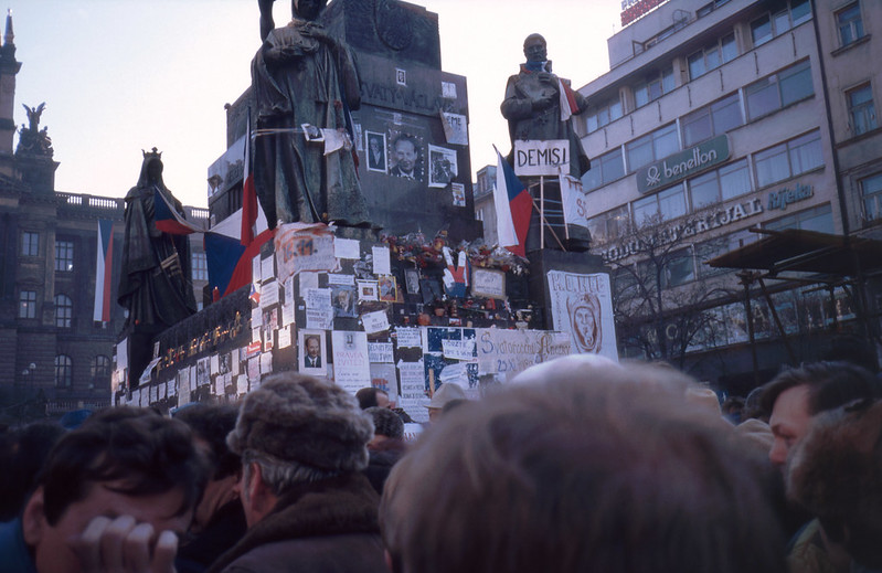Václav Havel, aclamado en la Plaza de San Wenceslao y futuro presidente Checo