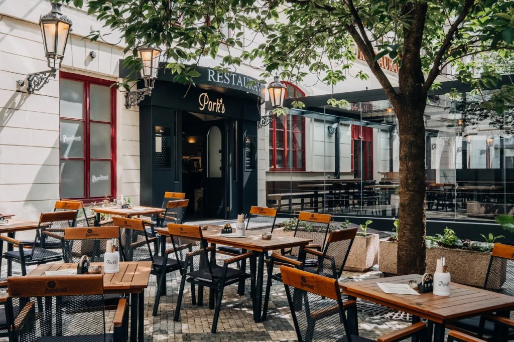 Restaurante Pork’s El mejor sitio para comer un codillo. Local especializado en la rodilla del cerdo. Para nosotros, el mejor local para comer este plato. Cerveza de tanque Pilsner Urquell muy barata. Menú en español.